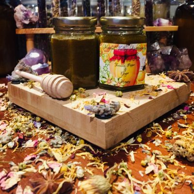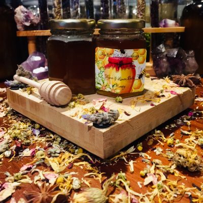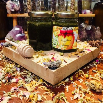 “Electuaries” are honey infused with medicinal herbs. Taking medicine can be a chore, especially when it comes to giving it to children. Until now!! When honey is mixed with herbs for a period of time it intensifies the healing properties of those herbs, in return only small amounts are needed. They can be given by spoon or they can be made into treats, no-bake cookies, smoothies, candies, and more. They can be taken daily or in times of need. 1 level Tsp for adults, 1/2 Tsp for under 12 years.