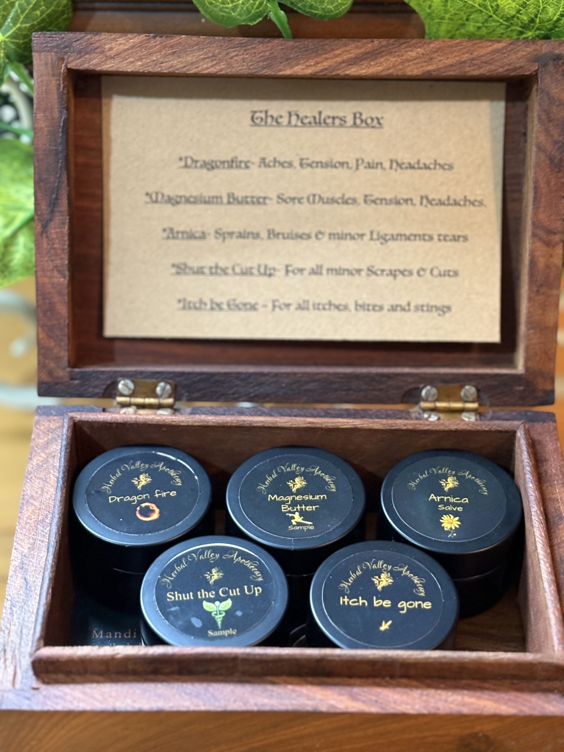 Itch be Gone – For all itches, bites & stings – Calendula oil, Beeswax, Honey, Betonite clay, Vitamin E, Peppermint, Tea tree, Chamomile, Frankincense and Patchouli essential oils.